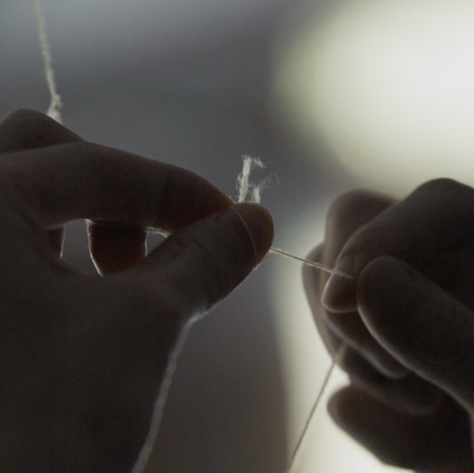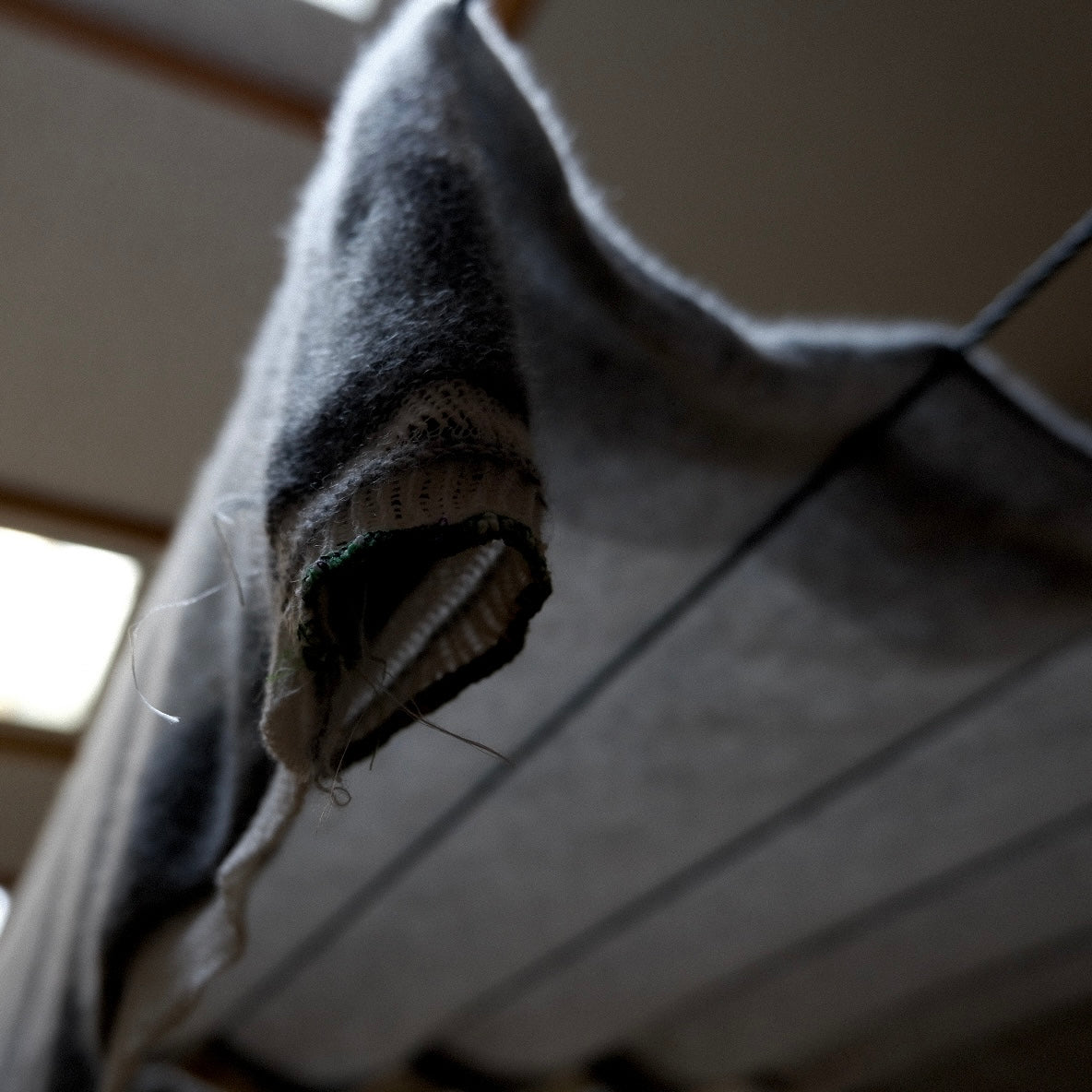 私たちのニットは、 一枚一枚、手で形を整えて、自然乾燥を行います。 糸に最もダメージのかからない方法です。ご家庭での洗濯は、 この工程を繰り返していただくイメージです。 使うほどに糸がほぐれ柔らかくなっていきます。
